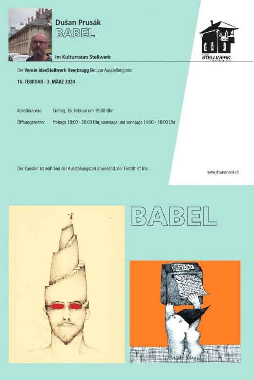 Der Musiker Dusan Prusak aus St. Gallen vergass lange zu zeichnen. Dabei malte er schon als Kind. Aber da er eine Doppelbegabung hat, widmete er sich zuerst vorrangig der Musik. Doch dann kam die Pandemie ohne Auftritte. Da besann er sich aufs Neue seiner Liebe zum Zeichnen. Seitdem sprudelt es aus ihm wie aus einer reichen Quelle. Es war lange aufgestaut! Sofort folgten Ausstellungen in St. Gallen und gar in Florenz. Nun findet eine Ausstellung im Kulturraum Stellwerk Heerbrugg statt. Natürlich gibt er inzwischen wieder Konzerte, spielt Kontrabass in verschiedenen Formationen. Ein Duo nennt sich Cindy und Bert. Das ist ironisch, interpretieren sie doch Miles Davis und andere Jazzgrössen. Da sehen wir schon den Humor. Dieser zeigt sich exorbitant in den Zeichnungen. Subversiv fatalistisch zeichnet er die Menschenwelt. So sieht man auf einer Zeichnung ein Männchen, das einen Gummipanzer aufbläst. Diesen könnte man mit einer Nadel platzen lassen. Wann geht den Kriegen die Luft aus? Make Art, not War! Auf einer anderen Zeichnung schütteln sich zwei Skelettarme die Hände. Sind es Leblose, die Handshaken? Unechte, eine Art Zombies? Es gibt auch einen Briefkasten für kleingedruckte Gartenzwerge, die liebenswert scheinen. Aber man hüte sich vor ihnen! Es könnte Heuchelei sein! Ein fröhlicher Roboter serviert lachend einem verzweifelten Gast an der Bar Drinks. Gutgelaunte KI übernimmt die Führung, dem Menschen bleibt das Glas. Aber alles ist auch wider dem tierischen Ernst, Humor ist eben, wenn man trotzdem lacht! So bevölkern da und dort lustige Tiere die Bilder und Badenixen winken fröhlich. Die Schweiz begrüsst indessen einen wichtigen Gast, der am Flughafen aus dem Jumbo, einem Walfisch, steigt. Die Welt ist nicht perfekt, sie soll es auch nicht sein. Das ist Leben! Perfektion führt zum Tod, zum Stillstand. Das Unperfekte treibt an, da es Reibung gibt und stets überrascht. Man erinnert sich an die frechen Zeichnungen von Tomi Ungerer oder an Loriot, der mit Schalk die Obrigkeitsgläubigkeit und die Versprechungen des Wirtschaftswunders auf die Schippe nahm. Heute ist es der Glaube an Konsum und Luxus, der Anlass zum Lachen gibt. Das Lachen ist die grösste Kraft, es ist Prusaks Waffe des Entlarvens. Der Humor vertreibt die Angst. Die Ausstellung lässt Political Correctness aussen vor. Kunst ist eben frei. Kein dressierter Künstler begegnet uns in der Ausstellung, sondern ein Freigeist der besonderen Art. Schmunzeln wir mit ihm über das Menschsein und über uns selbst.