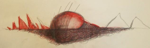 Gouache und Bleistift auf Papier