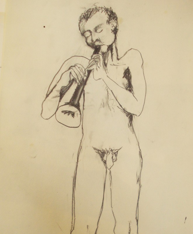 Selbstportrait mit Flöte
