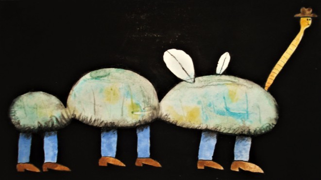 Aquarell, Tusche und Collage auf Papier