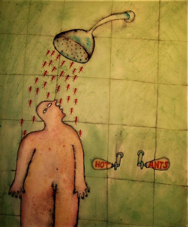 Kerzenwachs, Aquarell und Tusche auf Papier