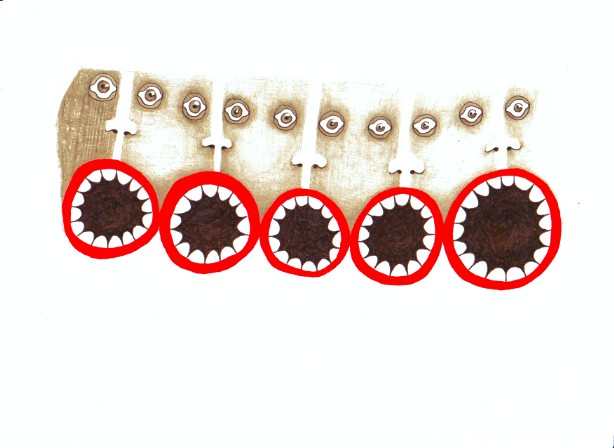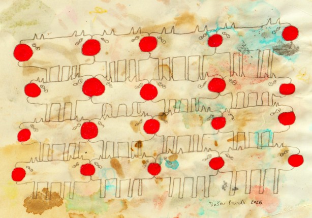 Bleistift, Tusche und Marker auf Papier