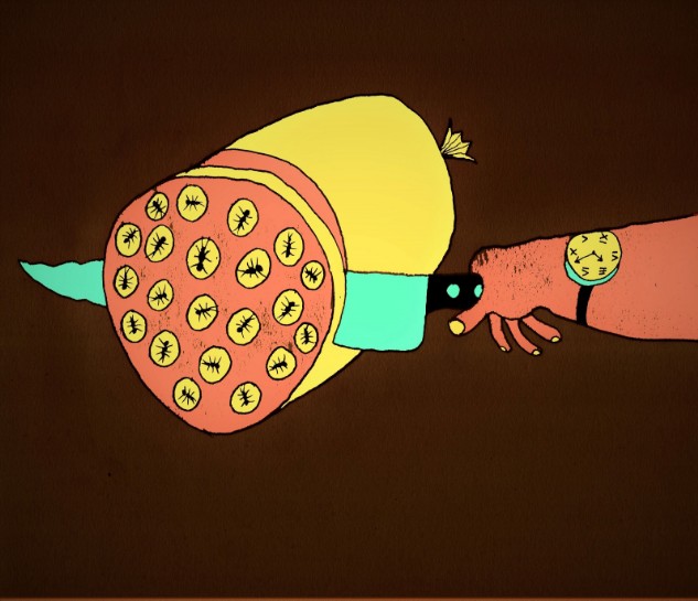 Eine Zeichnung auf Papier wird gemacht, diese wird fotografiert oder gescant